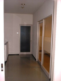 【1F書庫】 倉庫だったこの部屋は書類を保管する 書庫にした。断熱材付の石膏ボードを下地 にし温度環境を改善した。 床はオフィス同様OAフロアとしたので サーバーの設置などにも対応できる。 |